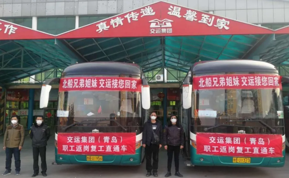 ?點(diǎn)對(duì)點(diǎn)包車(chē)接承包商職工返廠(孫杰 攝)