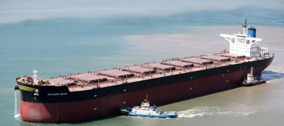 近日,中國船舶集團旗下大船集團渤船重工聯合中船貿易共同為挪威Frontline公司建造的一艘21萬噸散貨船 “GOLDEN SKIES”號交付。該船是渤船重工為FrontLine公司建造的4艘21萬噸系列散貨船中的第二艘,也是渤船重工復工復產以來交付的第三艘21萬噸散貨船。