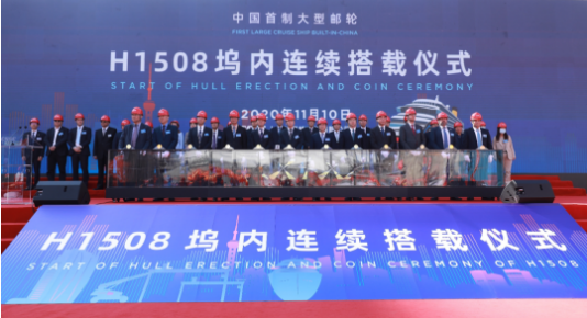 大型郵輪工程是中國船舶集團貫徹習近平總書記重要指示精神、落實國家戰(zhàn)略、滿足人民美好生活需要的重大舉措,也是中國船舶集團強化科技創(chuàng)新、促進轉型升級、推動高質量發(fā)展的一號工程。2018年11月6日,中國船舶集團與美國嘉年華集團、意大利芬坎蒂尼集團在首屆中國國際進口博覽會上正式簽訂2+4艘13.5萬總噸Vista級大型郵輪建造合同,并舉行了中國船舶集團大型郵輪項目工程正式啟動儀式。這是我國首次簽訂真正意義上的大型郵輪建造合同,開啟了中國船舶工業(yè)建造大型郵輪的新時代。2019年10月18日,中國首制大型郵輪在外高橋造船正式開工點火進行鋼板切割,全面進入實質性建造階段。一年多來,在中國船舶集團的堅強領導下,在中船郵輪科技發(fā)展有限公司、中船第九設計研究院工程有限公司、上海船舶工藝研究所等兄弟單位的大力支持下,外高橋造船經(jīng)受住了新冠肺炎疫情的洗禮和考驗,克服了物資采購、薄板車間流水線建設滯后等一系列困難,一步一個腳印,如期實現(xiàn)了塢內連續(xù)搭載總裝的里程碑節(jié)點。