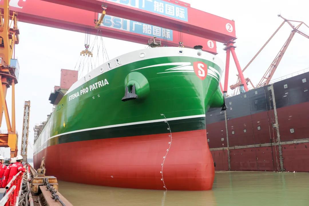 國內首艘甲醇雙燃料船出塢!這是由中國船舶集團旗下廣船國際建造的4.99萬噸甲醇雙燃料化學品/成品油船首制船。該船是國內建造的首艘采用甲醇/燃油雙燃料動力的新型環保船舶,預計將于2022年初完工交付。