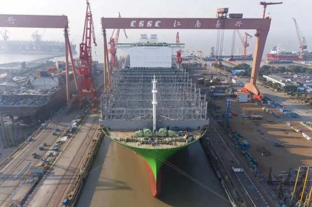 據悉,為長榮海運建造的5艘24000TEU超大型集裝箱船首制船于去年12月份出塢,計劃將于今年上半年交付,2號船正在塢內進行搭載作業,3號船已開工建造。為地中海航運建造的1號船已入塢搭載總裝,2、3號船進入平臺總組階段,4號船也已開工建造。全球最大箱船建造進入“滬東中華時間”。