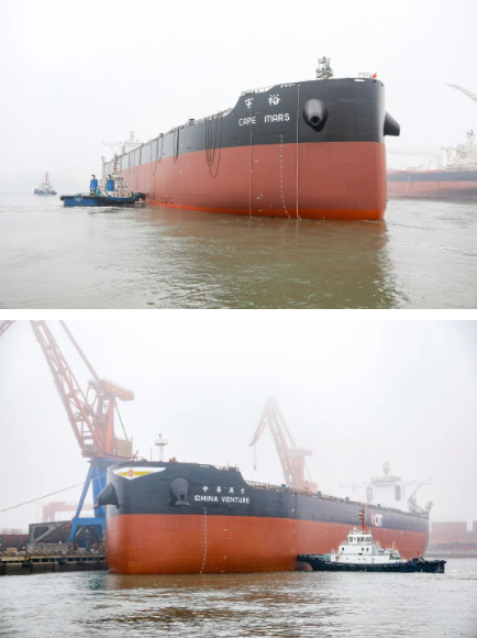 1月12日,中國(guó)船舶集團(tuán)旗下北海造船2號(hào)塢21萬(wàn)噸16號(hào)、23號(hào)散貨船出塢,順利實(shí)現(xiàn)大節(jié)點(diǎn)計(jì)劃,迎來(lái)2023年開門紅。