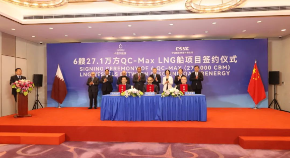 9月9日,三方新簽了6艘全球最大27.1萬立方米超大型LNG船訂單。至此,三方已累計(jì)簽訂24艘27.1萬立方米超大型LNG船、12艘17.4萬立方米大型LNG船,以載氣量計(jì),位居全球各船廠之首??ㄋ柲茉词聞?wù)國(guó)務(wù)大臣、卡塔爾能源總裁兼首席執(zhí)行官薩阿德·謝里達(dá)·阿爾卡比,上海市副市長(zhǎng)陳杰,中國(guó)船舶集團(tuán)黨組成員、總會(huì)計(jì)師賈海英等出席簽約儀式。