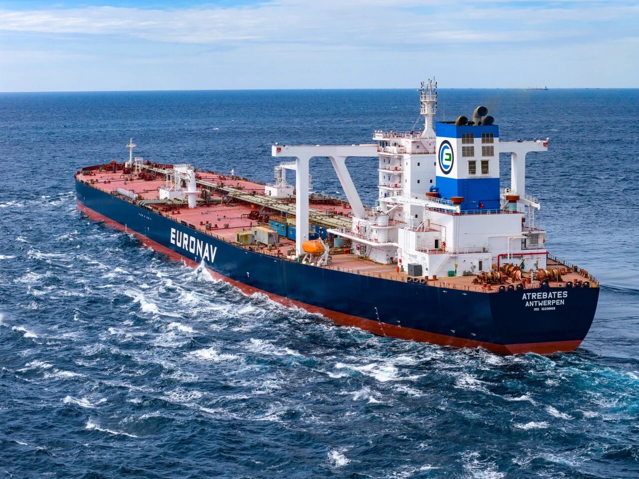 北海造船為比利時CMB.TECH公司旗下Euronav公司建造的31.9萬噸超大型原油船(VLCC)首制船試航凱旋。