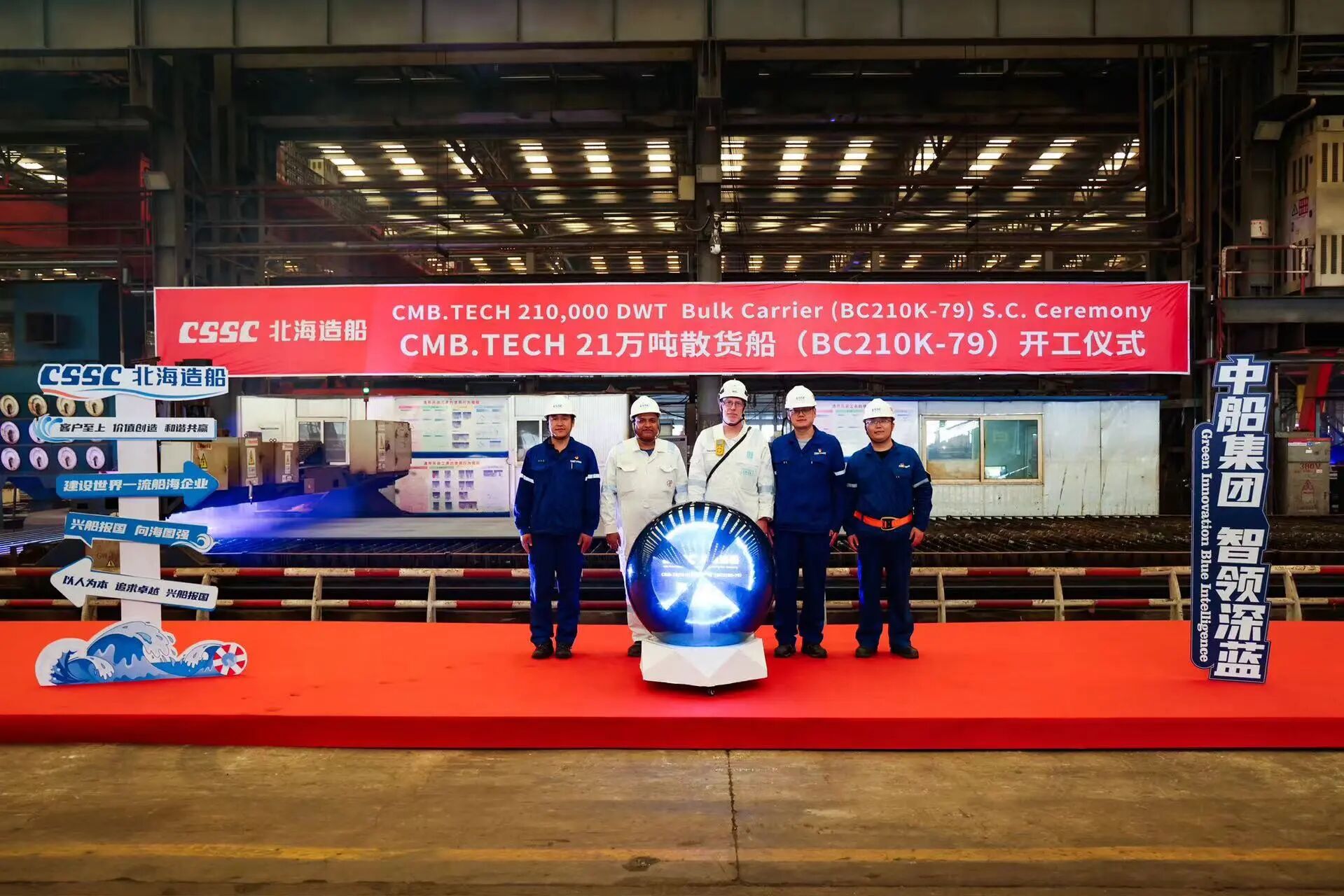 北海造船承建的新加坡EPS公司21萬噸液化天然氣(LNG)雙燃料動力散貨船項目60號船和比利時CMB.TECH公司21萬噸散貨船項目79號船順利開工。60號船是該系列船舶中的第4艘,79號船是北海造船為該船東建造的第27艘同型船。
